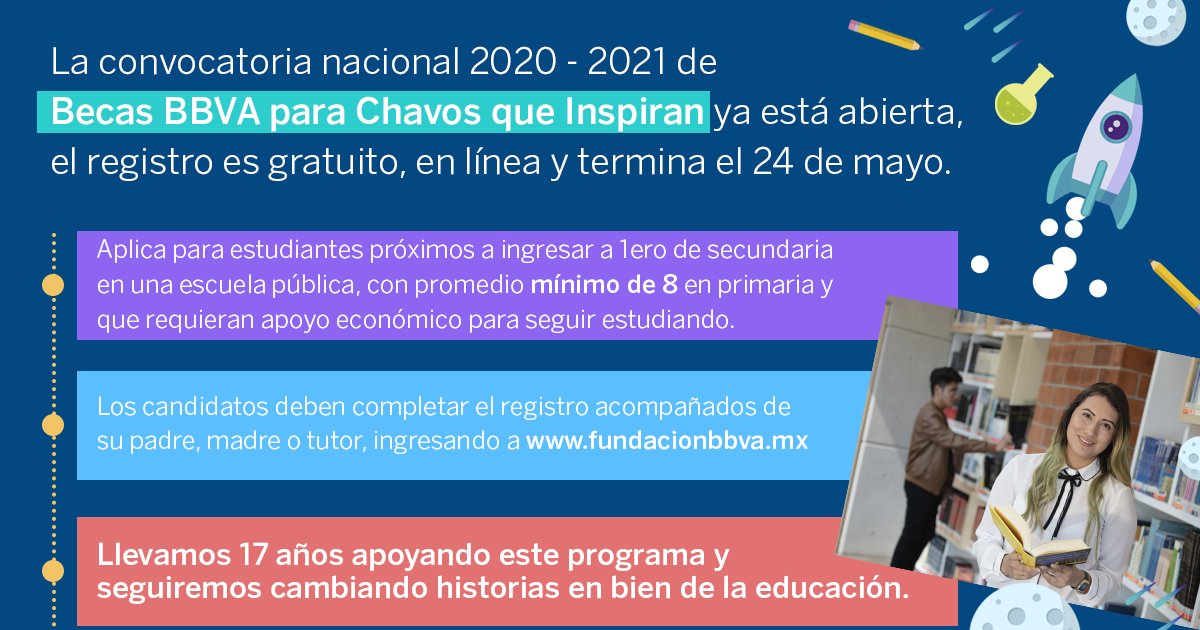 La fundación del banco bbva busca mejores oportunidades para fomentar la movilidad social a través de la educación, por lo cual a través del programa becas bbva chavos que inspiran apoya. See more of becas bbva para chavos que inspiran zamora on facebook. Becas bbva, está disponible para todo ciudadano mexicano que cumpla con los requisitos básicos establecidos. La resolución de la convocatoria se hará. ¿quieres conocer sobre las becas por lo que se quedan bbva? Objetivo de las becas bbva para chavos que inspiran. El programa becas 3000 de bbva te ofrece la oportunidad de trabajar en un banco internacional como el bbva para desarrollarte profesionalmente en una de las áreas del banco que mejor se. Formulario para solicitar becas bbva, convocatoria 2021. Se han creado becas del bbva para ayudar a formar a los estudiantes en las universidades y escuelas ofreciéndoles puestos de entrada instructivos en esta increíble organización presupuestaria. * beca económica de $2,000 a $3,000 mensuales (10 meses por año). Por último,estas becas están repartidas según la localización de las entidades y por lo tanto se facilita a los solicitantes la incorporación a la más cercana a la vivienda. Por esta razón impulsamos la educación apoyando a estudiantes. El programa bbva llamado becas bancomer o inmersión bbva busca establecer redes de que está dedicada exclusivamente al programa de becas bbva para chavos que inspiran: